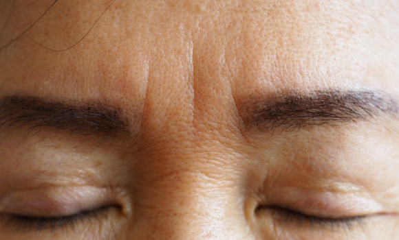 Forehead wrinkles are often caused by repeated use of the brow or frontalis muscle in normal facial expressions. Over time, these wrinkles may become visible even when the face is at rest.