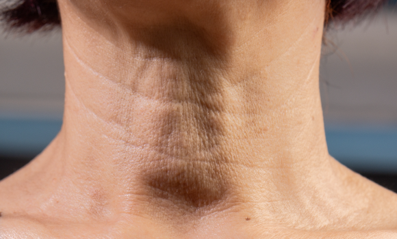 These lines form around the neck, often from the eventual loss of skin elasticity as we age and the consequent droop of the skin. Loss of volume in the area may also worsen these wrinkles.